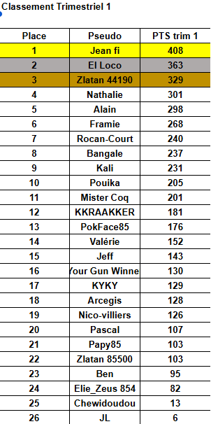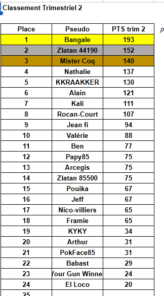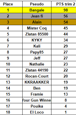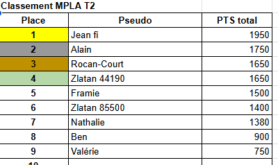 Les classements Accueil Les Classements Classement Annuel Classement 2 eme Trimestre Classement MPLA T2 Classement 1er Trimestre Classement 2 ème Trimestre